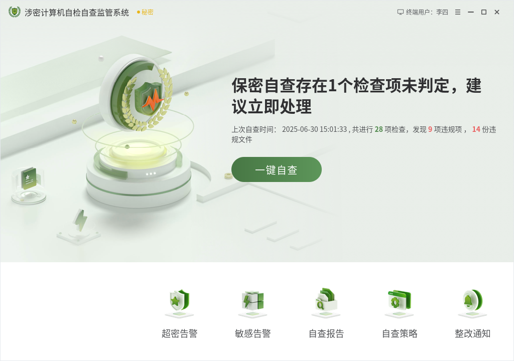 - 涉密計算機自檢自查監(jiān)管系統(tǒng)——筑牢國防信安防線